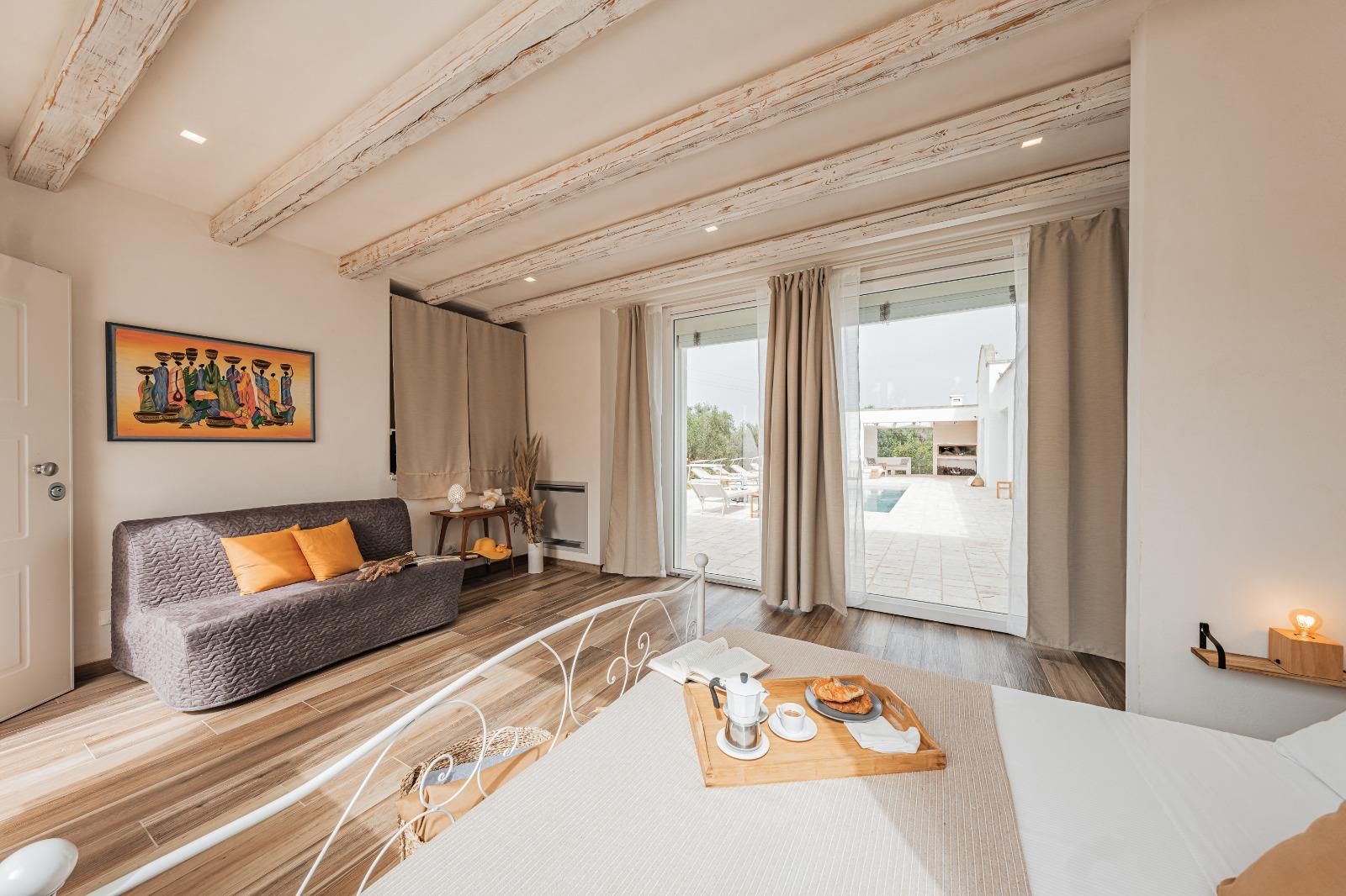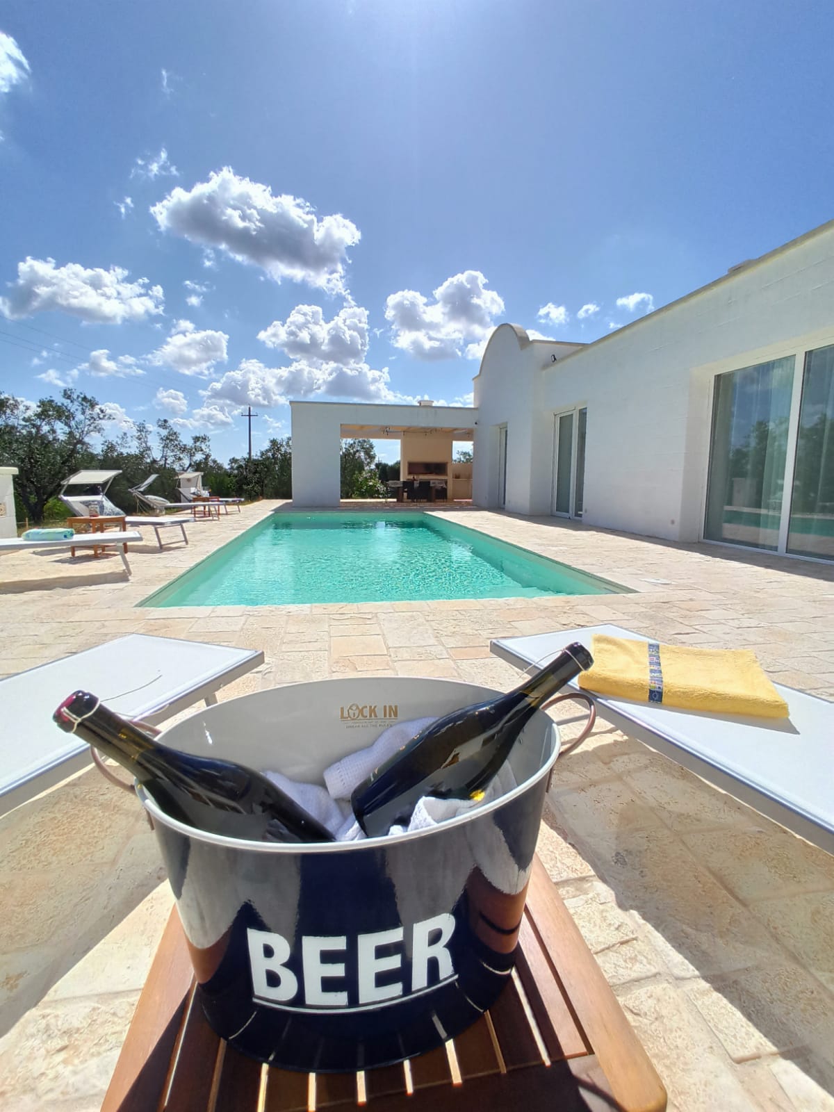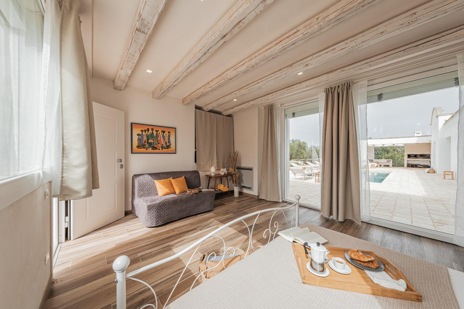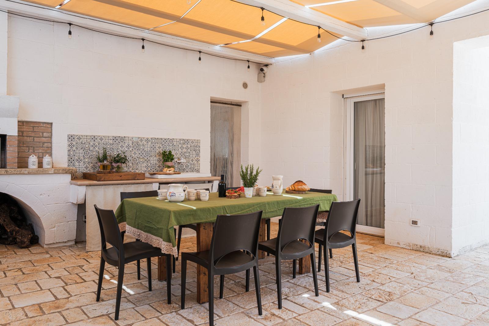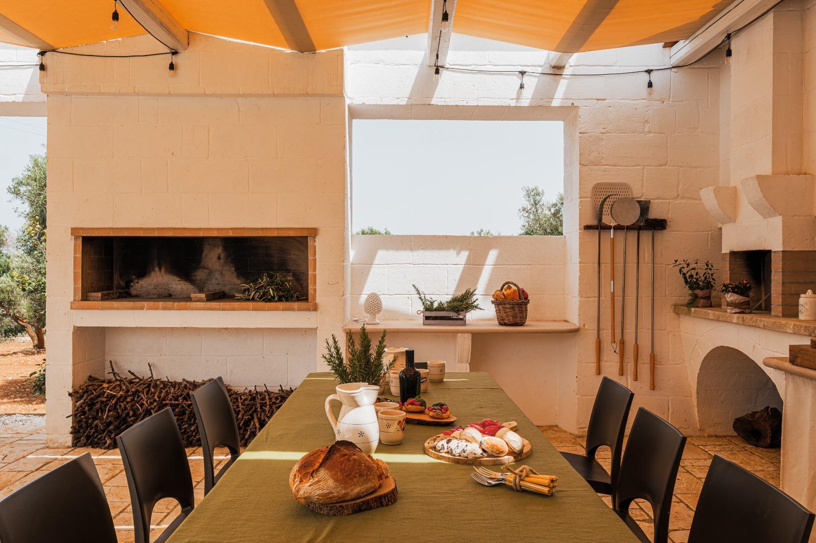 A far da cornice a tutto vi sono le verdi e rigogliose chiome degli ulivi della vallata che circondano una splendida piscina dalle forme classiche e dal colore turchino vivace, attorno alla quale ci si può comodamente distendere e rilassarsi rigenerandosi vivendo la Puglia nella sua autenticità, in assoluta pace e relax.