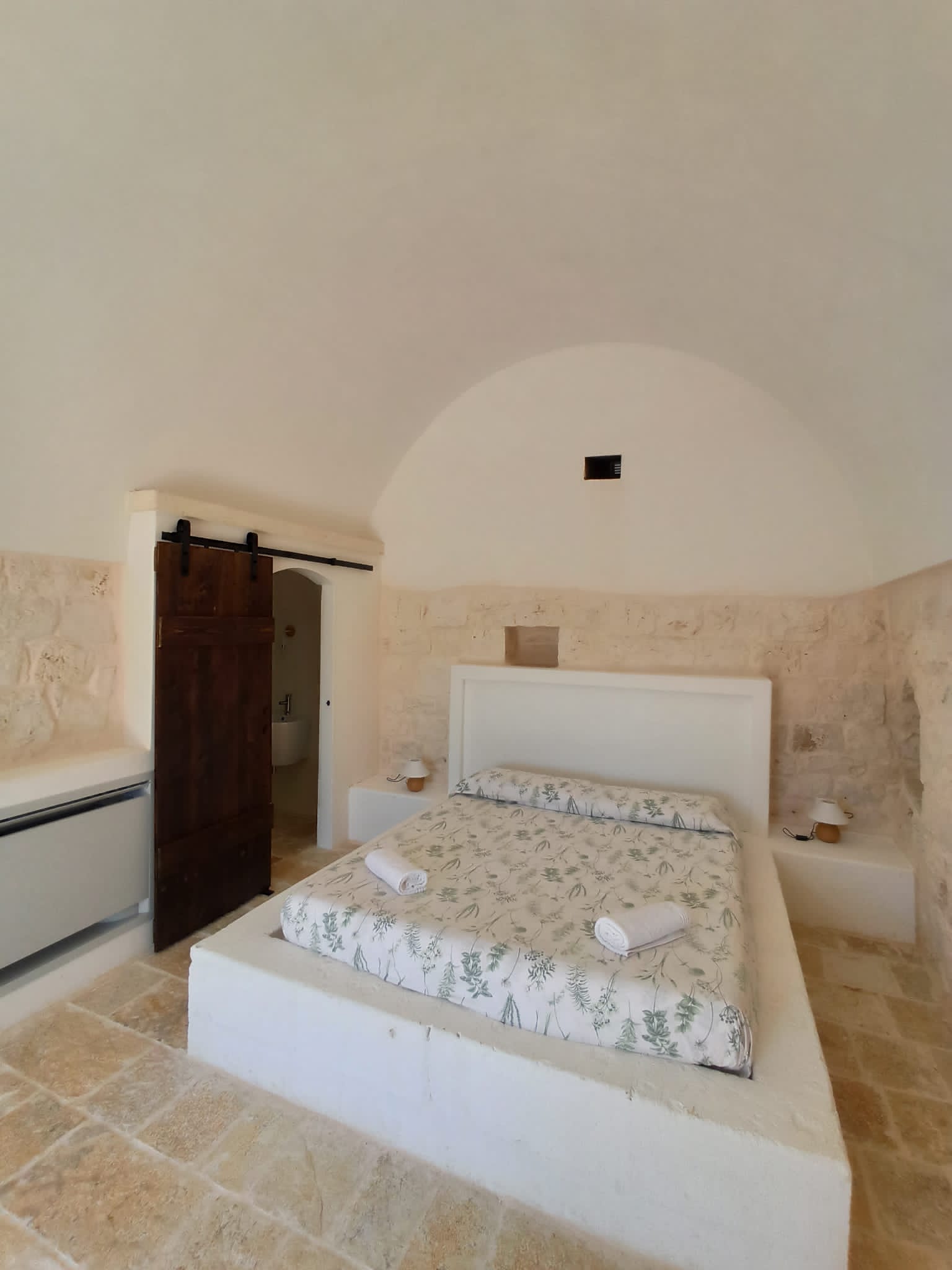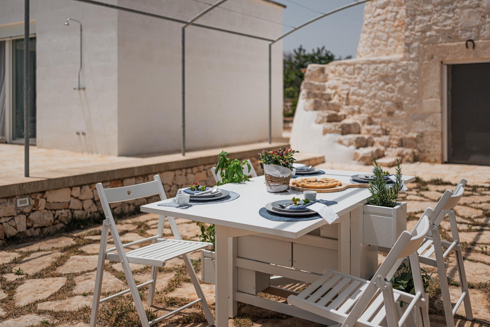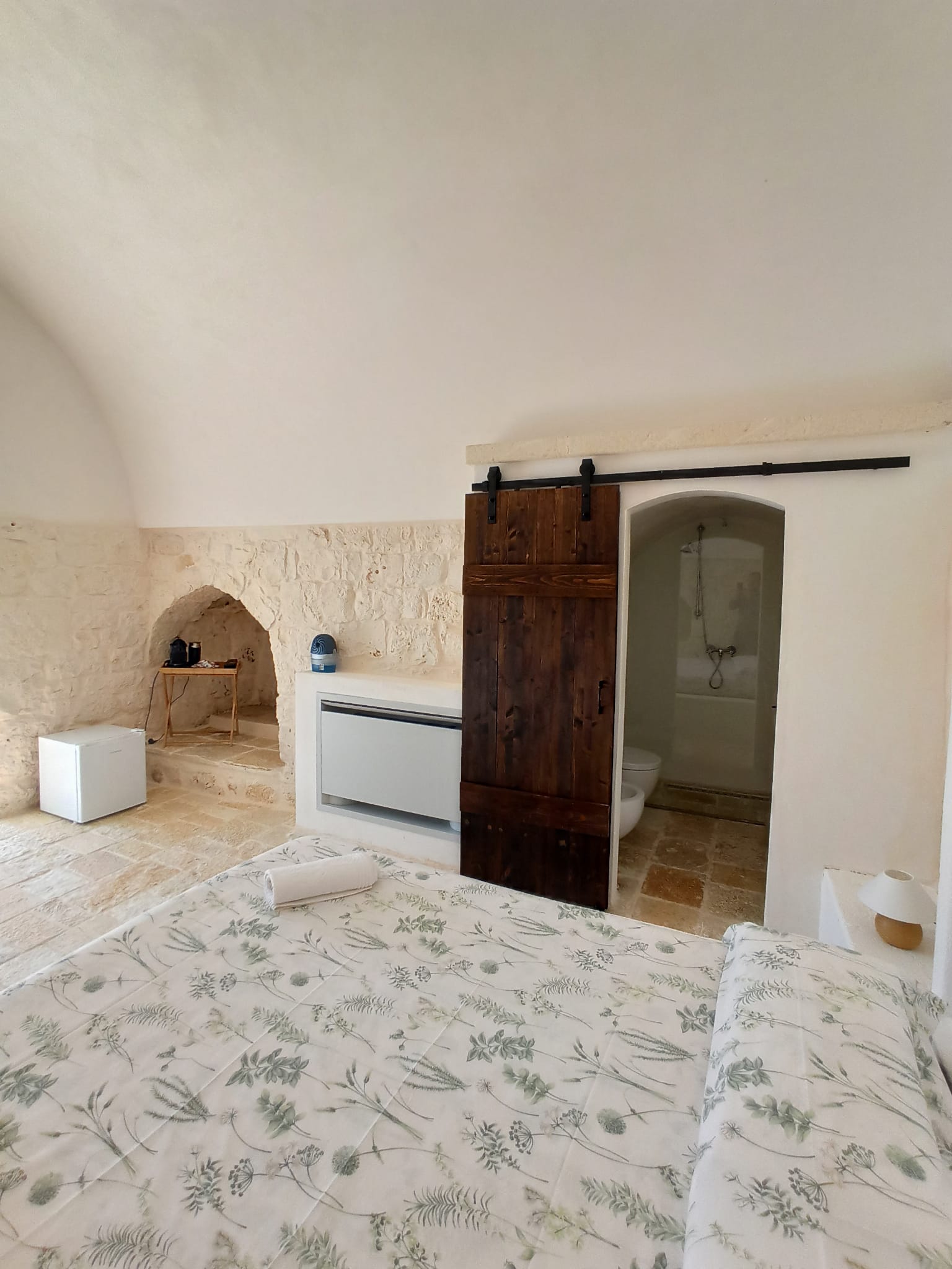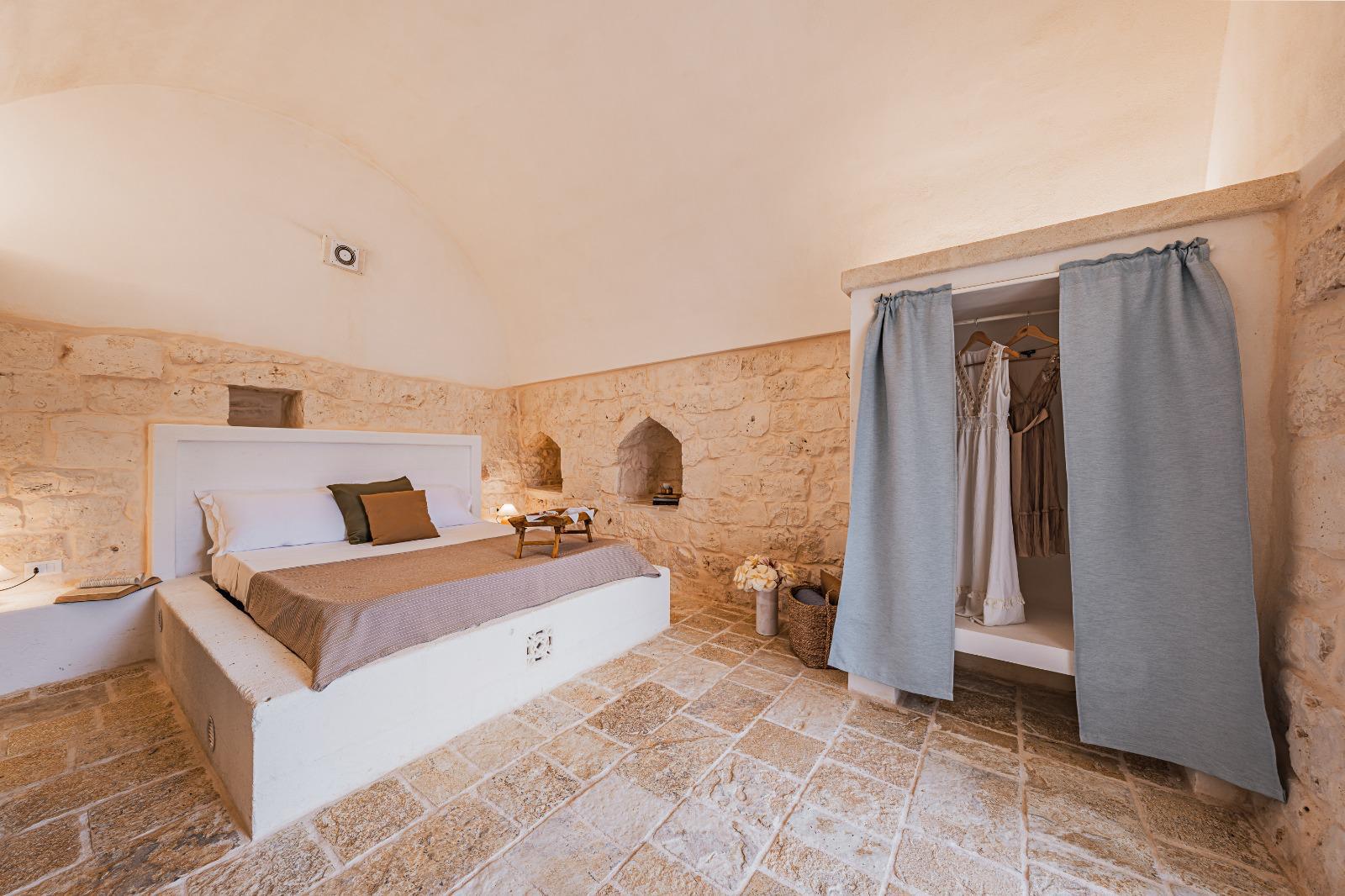 In particolare, sono le Masserie della zona che hanno attirato la nostra attenzione e così abbiamo deciso di voler realizzare una costruzione che si ispirasse a quello stile e al modo in cui sono costruite. Si è trattato di amore e passione a prima vista e per tale motivo vogliamo condividere questo piccolo gioiello immerso tra gli ulivi con voi, nella speranza di farvi vivere un sogno, proprio come è accaduto a noi! Il nostro principale obiettivo è quello di mantenere il più possibile l’originalità e l’autenticità del luogo senza però rinunciare ai comfort dei giorni nostri.
