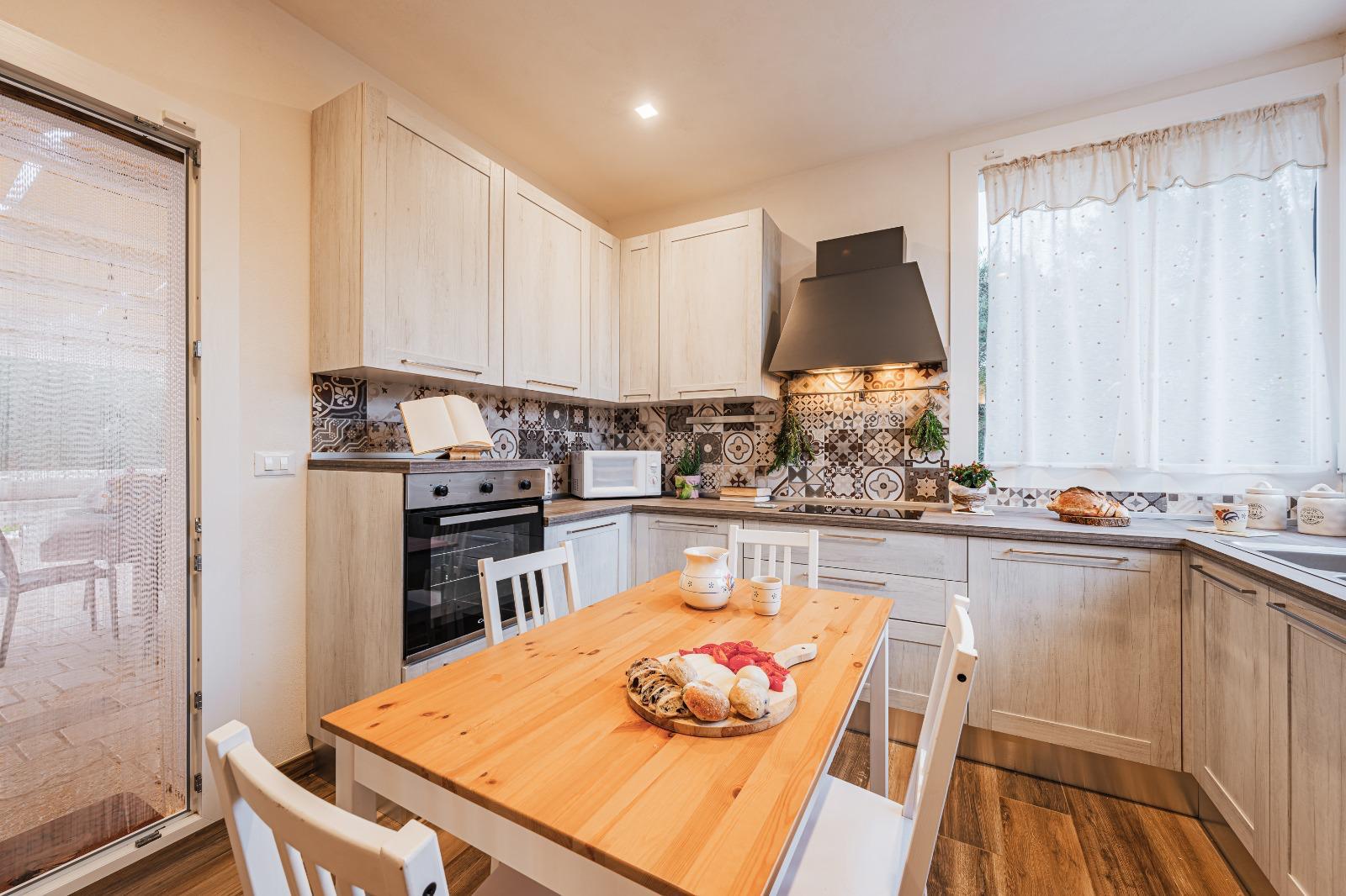 La struttura principale è formata da una cucina abitabile, soggiorno con volta a botte, un grande camino dinanzi al quale passare tranquille serate autunnali, 1 camera matrimoniale con bagno annesso, 1 camera singola e 1 doppia con letto a castello e 1 bagno con doccia. Una dependance formata da un ampio soggiorno con angolo cottura e divano letto, bagno (con doccia) e affaccio diretto sulla piscina. Un’alcova (la Lamia) con letto realizzato in tufo e un bagno con doccia.