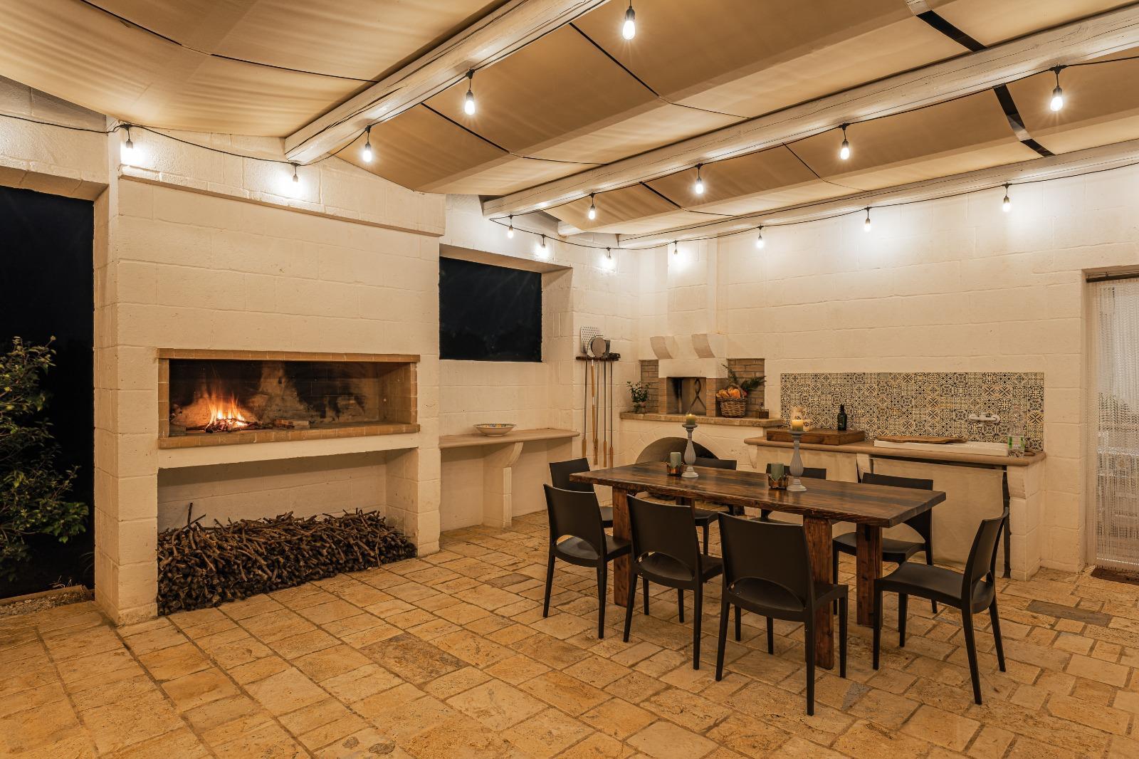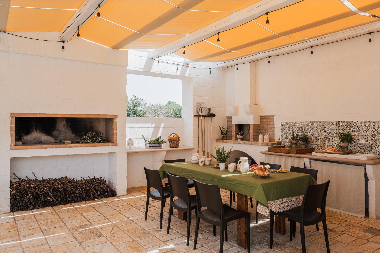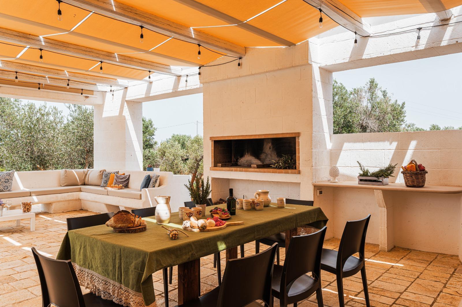 Tra gli spazi esterni attrezzati, inoltre, vi sono sia la corte antistante la Lamia e un enorme veranda con pergolato, un vero angolo di pace, di pertinenza alla struttura principale e attrezzata con tavolo, angolo cottura, barbeque in pietra e forno a legna .