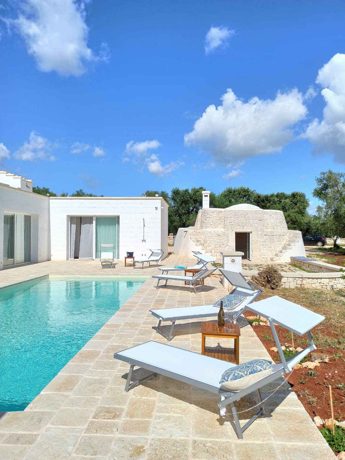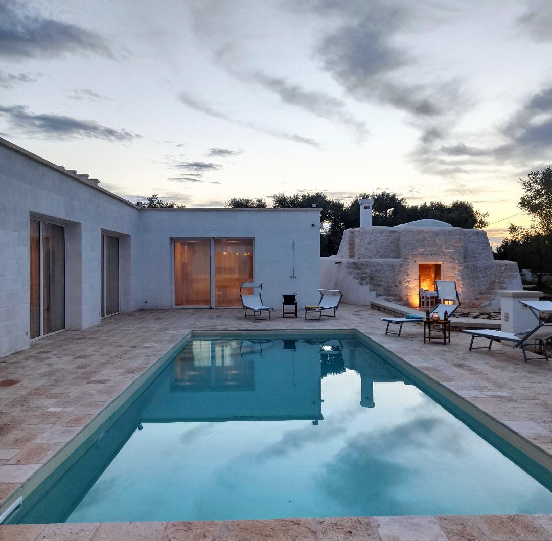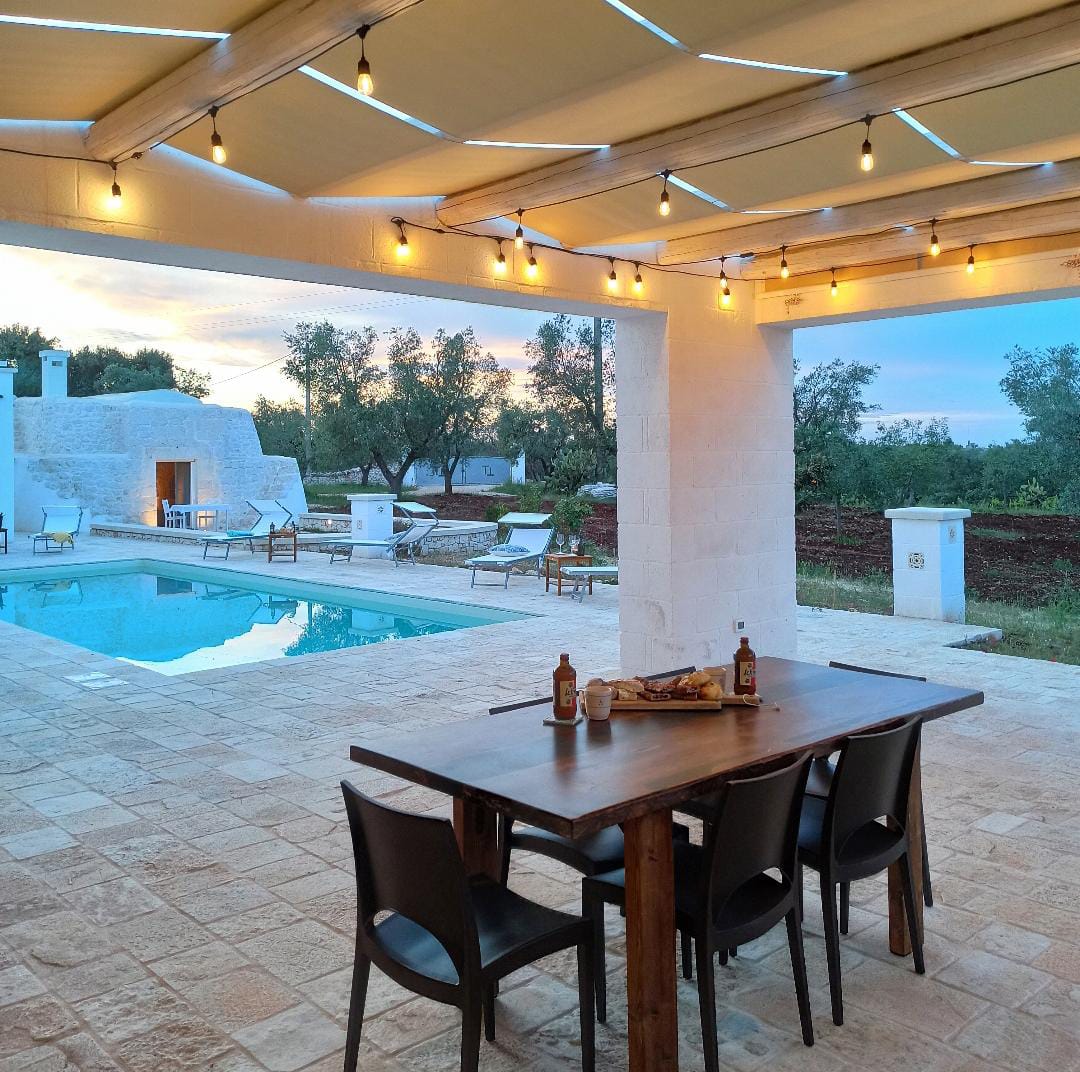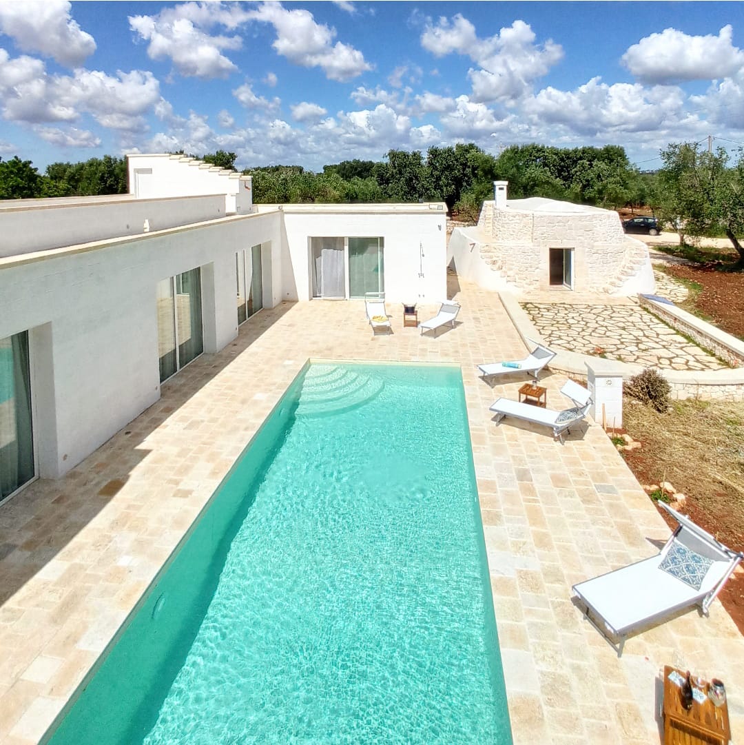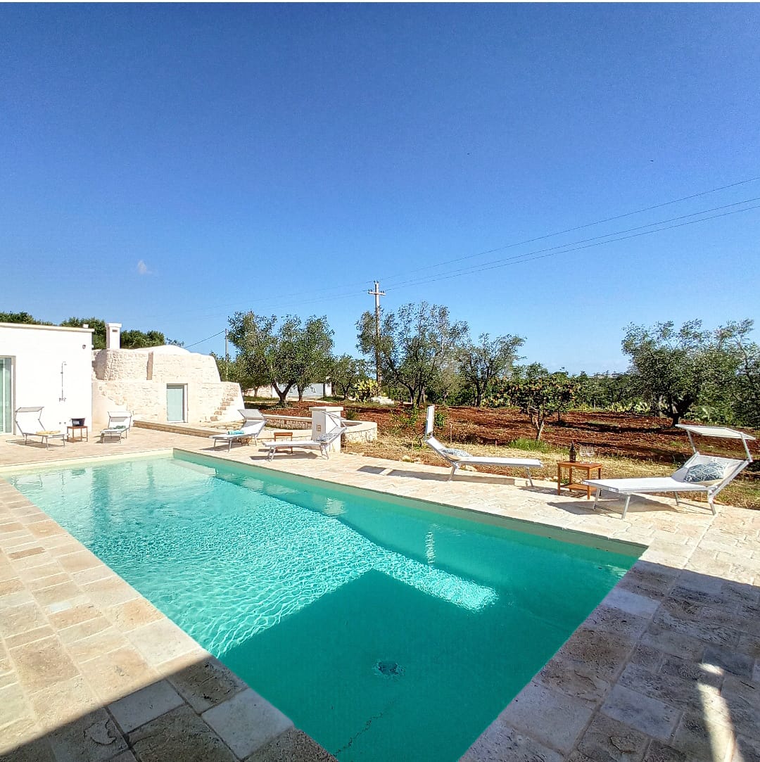 To frame everything there are the green, and lush, foliage of the olive trees of the valley that surround a splendid swimming pool with classic shapes and a lively blue color, around which you can comfortably stretch out and relax living Puglia in its authenticity, in absolute peace and relaxation.